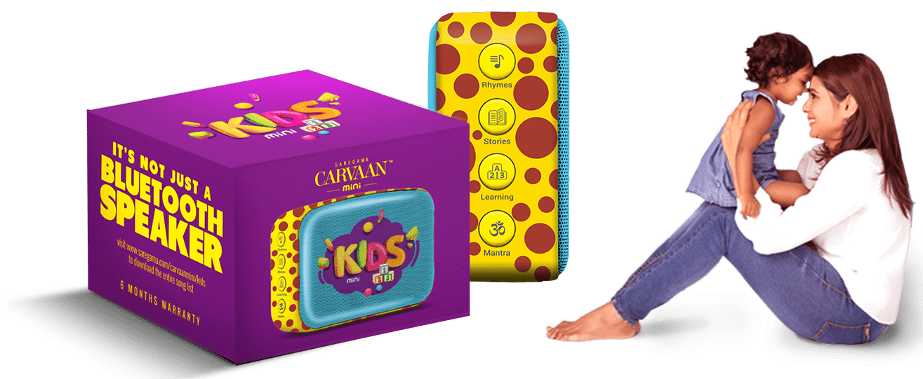 Too much of screen time? Same old gifts for children? Kids always complaining of getting bored? We have a solution to all such similar problems. Saregama brings – Carvaan Mini Kids , a portable audio player especially designed for kids aged between 2-9 years. It is so compact, portable, light weight, child safe and easy to use that it needs no assistance from elders or parents to operate. It does not require internet to play and there are no ad breaks to interrupt your child’s listening experience. It is designed in a way that every child can independently operate and listen to favourite rhymes, stories or learn phonetics, alphabets, numbers or tables. Carvaan Mini kids is a complete package for your child’s educational and playtime needs. It has 4 dedicated modes – Rhymes, Stories, Learning and Mantras. This helps in easy selection as per your child’s mood and need. Rhymes- The Rhymes mode has 80+ classic English and Hindi rhymes like Humpty Dumpty, Mary had a Little Lamb, Ringa Ringa Roses, Jack & Jill and many more to make your kid learn from. Stories- Children often imagine when they listen to something than watch it. This mode has 300+ stories in English and Hindi like Akbar & Birbal, Fairy Tales, Mythology and many more. Learning- It helps your child learn phonetics, Days of the week, Months of a Year, Numbers Tables, etc. with its 15+ pre-loaded and curated content library Mantras- It has 33+ mantras and devotional songs like Gayatri Manta, Hanuman Chalisa and more for your child to sing along and learn. There is a special feature called Loop. Whatever your child likes to hear again and again, press the loop button given on top and it starts playing in repeat mode. And the added features like Bluetooth, USB, Aux in/ Out makes it equally attractive for the parents too! So take a first step towards reducing your child’s screen time without compromising on learning, gift them a Carvaan Mini kids.